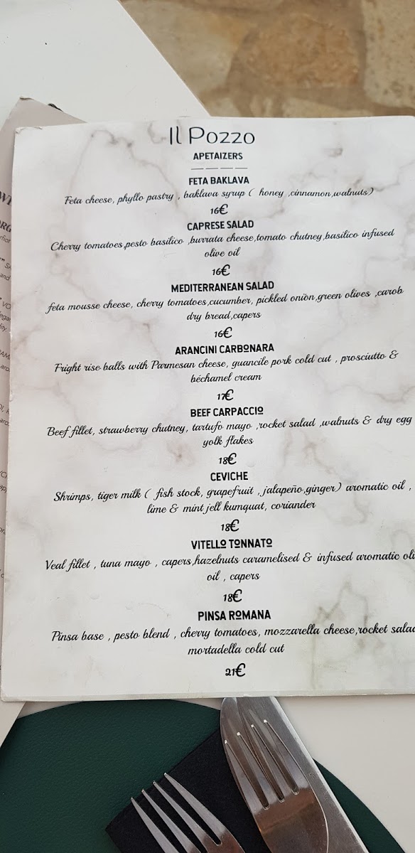 The menu at il pozzo corfu reflects a thoughtful blend of Mediterranean flavors and comforting, well-prepared dishes that invite relaxed, unhurried dining. This is a place where you can enjoy refined, yet approachable food in a calm and intimate setting, making it ideal for both leisurely dinners and special evenings surrounded by the natural beauty of Corfu.