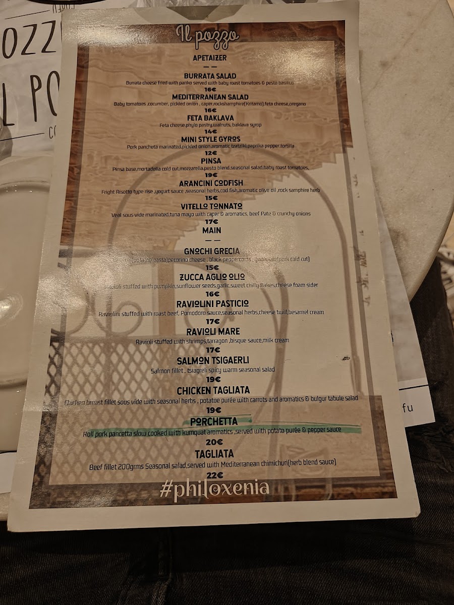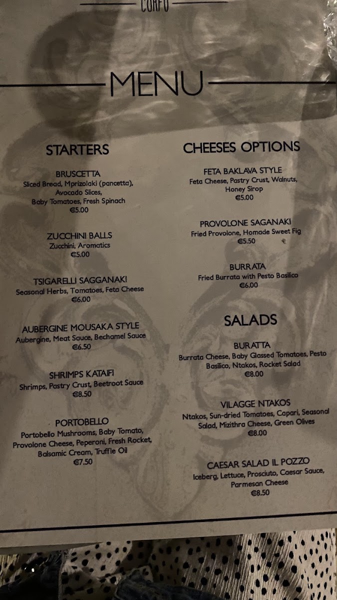 il pozzo corfu Menu